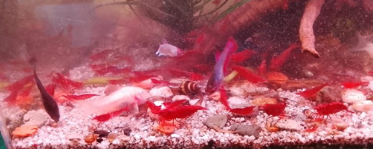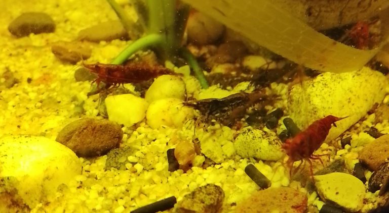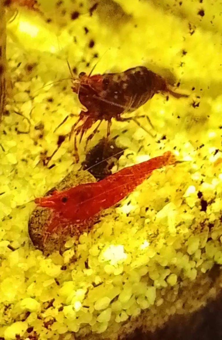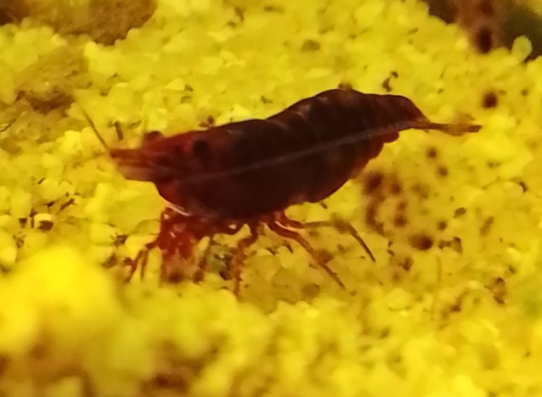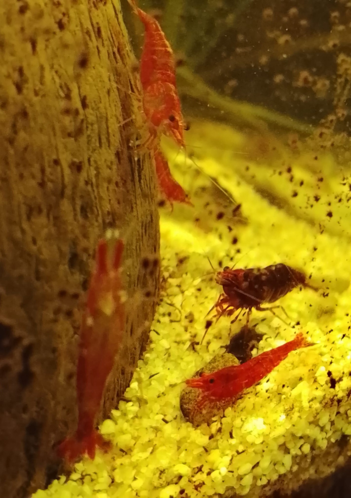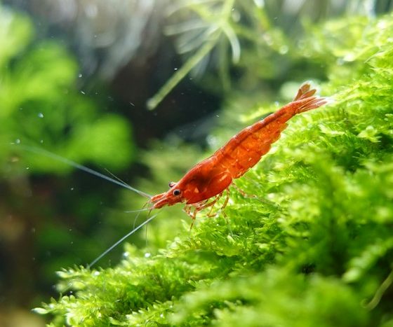 Cherry Red garnalen met een rode kleur en actief gedrag. Ze kunnen een opvallende en kleurrijke aanvulling zijn in een aquarium en zorgen voor een levendig onderwaterbeeld.