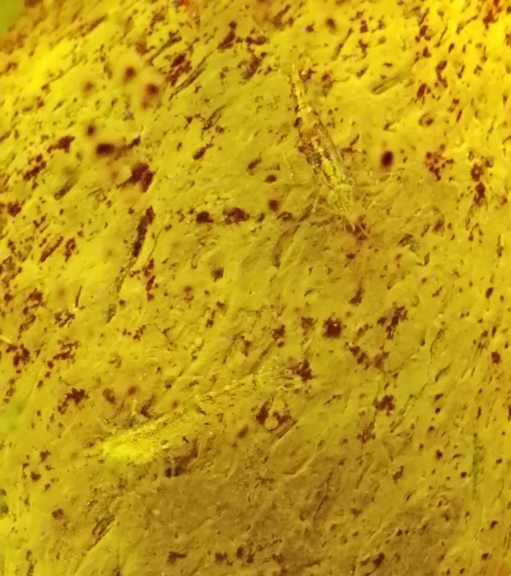 Wildkleur garnalen met een natuurlijke variatie in kleur, van donkerbruin en zwart tot transparant, inclusief diverse tussentinten. Ze passen goed in een aquarium en dragen bij aan een levendig onderwaterbeeld.